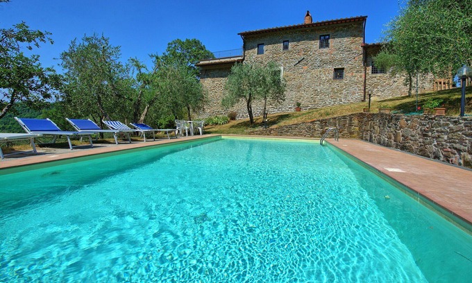 Experience Chianti: dive in the pool, swimming and enjoying our villa. Beautiful stone farmhouse peacefully situated in the heart of the Chianti Classico area. The villa has been skilfully restored with its original architectural features and its ancient charm preserved and turned into a charming country house with private swimming pool. This villa offers splendid views over vineyards and olive groves and is an ideal destination for those who wish to spend a relaxing holiday in close contact with nature. The villa is nicely and comfortably furnished in a typical Tuscan style.