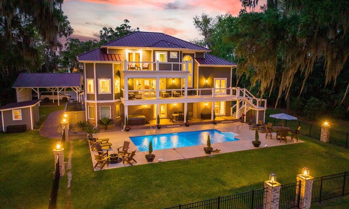 Private Waterfront Estate w/Pool & Hot Tub - 10 Miles to Sav Historic District is located in Montgomery. Private Waterfront Estate w/Pool & Hot Tub - 10 Miles to Sav Historic District provides accommodation, featuring Fireplace/Heating, Pet Friendly, Pool, among other amenities. This House features Fireplace/Heating, Pet Friendly, Pool, to make your stay a comfortable one.