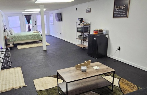 Our mother-in-law suite is ideal for a quick trip or serene getaway. Fishing is abundant here and we encourage boating and other activities (excluding swimming). There is no interior entrance from the main house to the suite so you have complete peace and quiet. Everything you need for a peaceful stay. Pets are welcome and we value our guests privacy! We have 1 queen bed and a futon as well as a mini fridge, microwave, and coffee station. The sunrises and sunsets are beautiful in our cove and it truly is peaceful country living. Guests are welcome to use the boat dock to tie off boats. We also have a private boat ramp if guests want to bring their own boats, kayaks, or jet skis.
