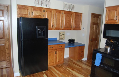 In the kitchen you will find full service for 16 total guests. The kitchen is outfitted with all the pots and pans, mixing bowls, serving bowls, cooking and serving utensils as well as leftover containers. There is a popcorn popper, coffee maker, blender, crock-pots, toaster and wine opener.