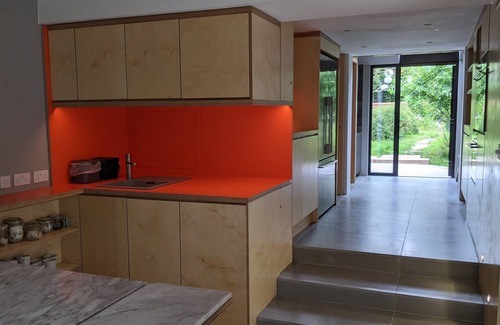Wood House Space is a huge, quirky property, set in beautiful gardens and many acres of ancient woodland, surrounded by open farmland and fields. The house is wildly unique - part 1870’s Game Keeper's Lodge, part striking Modernist double height glass extension. Inside we've got everything from enormous, open plan living and dining (and dancing) spaces, to a snug little library and cosy cottage kitchen. In the grounds you'll find our woodland spa and first area (please contact us for a separate quote for this). There is the woodland to explore, a woodland clearing to sit in, the Orchard complete with chicken coop, the vegetable garden and potting shed which is a great sit spot, there's a huge lie down swing and a hanging swing seat. Plus the covered veranda which has two swing seats, comfortable outdoor chairs, plus outdoor speakers, patio heaters and lasers!