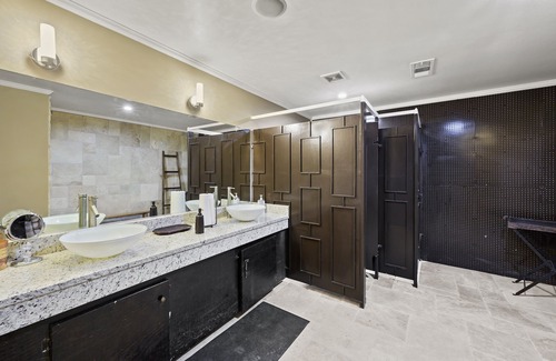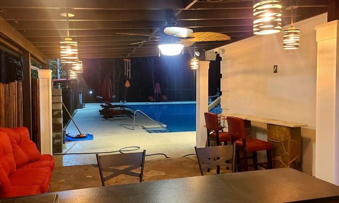 Private ten-acre swim & tennis retreat getaway. Ten acres of wooded landscape has a half of mile of private walking trail alongside a stream with waterfalls, property has two cabins with flats screen tv's, Ps5 and all your favorite streaming networks such as Netflix. The retreat has its own private campsite. The property has a full outdoor kitchen with a covered pavilion, a full outdoor basketball court and tennis court, a 75x 45 3375 sq ft resort style swimming pool with outdoor surround sounds with a pool house loft that overlooks the whole property. The studio loft has 85" flat screen tv with a queen bed and surround sounds. Swimming events, swim parties, basketball events, food catering events, tennis events, wellness outdoor programs, Photo shoot events, movie shoot, corporate getaways, birthday parties, family reunions, corporate picnics, any special occasion will all do well on this retreat property.
