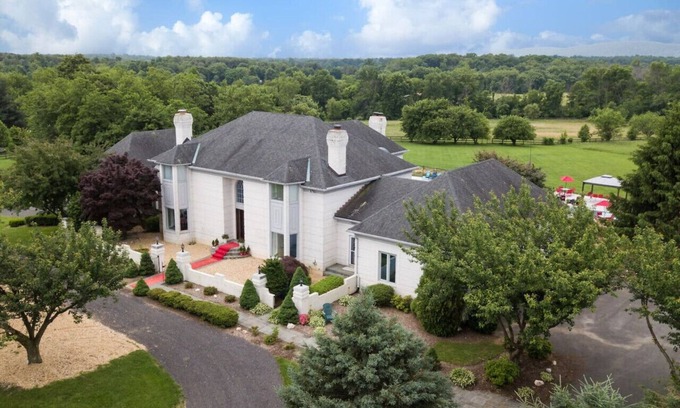 This house offers so much space for your family and friends to enjoy. The best news is its affordable to all. Great for a special get away for a romantic weekend with the 1200s/f master bedroom which includes a gym w/TV and shower. From the second you step in the stunning grand foyer you will appreciate the quality of this amazing all white brick 10,000 home. The beautiful Grand Foyer towers 38' with a glamorous unique chandler. On the 2nd floor includes a wonderful den that offers fantastic views to the 2 Story grand mahogany family room with stone fireplace. The library with custom Brazilian cherry built with solid hand carved doors offer a room of tradition privacy. This home allows a MAXIMUM of 16 guest and 12 vehicles