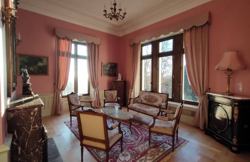 The interior of the château is adorned with timeless features such as high ceilings, intricate mouldings, exquisite frescoes, and vintage furniture, creating a captivating historical atmosphere without sacrificing modern comforts. The spacious layout accommodates your wedding party comfortably, featuring multiple living rooms, a dining room, and a fully equipped kitchen on the first floor, alongside elegantly appointed bedrooms with en-suite bathrooms. Guests can also enjoy leisure time on the second floor’s terrace, making it a perfect spot for pre-wedding photo opportunities or evening gatherings under the stars.