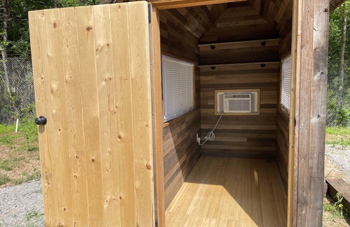 This spot (#3) includes probably America's smallest Tiny Home. It only fits a provided twin air mattress. If 2 guests would like to share the tiny home, we highly recommend that they like each other. There is air conditioning, lights, and a power outlet. Outside is your own propane fire pit, table, and chairs. There is also a common area bathroom and cold water shower.