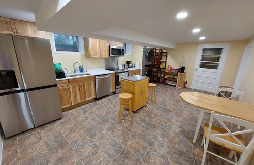 Totally private, newly renovated 1200 sq ft self-enclosed ground-level home with separate entrance, hardwood floors, quartz kitchen countertop, and top-of-the-line appliances. No stairs. 2 acres of paradise only steps from the IU football stadium, other sports arenas, Assembly Hall, Griffy Lake, and the IU golf course. IU professor lives on the main floor of the house upstairs. There is no shared space. We will be as quiet as possible upstairs so as not to disturb you. We hope you do the same for us. Quiet hours are 10pm-7am. Please review the House Rules.