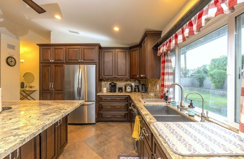 Your search for an ideal wedding accommodation ends with the Professionally Cleaned Cozy Home*Gateway*Two parking garage. This newly renovated 4-bedroom, 2-bathroom bungalow provides a serene setting just minutes away from the heart of Chino Hills, California. With ample space for your bridal party and family, you can enjoy intimate gatherings and cherish memories in a cozy yet stylish environment that feels like home.