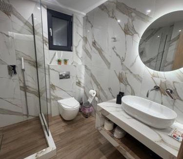 Featuring a garden, Project Georgiadi #1 - Modern Apartment in peaceful neighborhood - 15 mins from Loutra Pozar features accommodations in Aridaia. This property offers access to a terrace, free private parking, and free Wifi. This air-conditioned 1-bedroom apartment comes with a seating area, a cable flat-screen TV, and a fully equipped kitchen with a toaster. Guests can take in the views of the mountain from the balcony, which also has outdoor furniture. For added privacy, the accommodation has a private entrance and soundproofing. Loutra Pozar is 8.2 miles from the apartment, while Edessa Town Hall is 16 miles from the property. Kozani National Airport is 70 miles away.