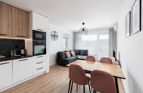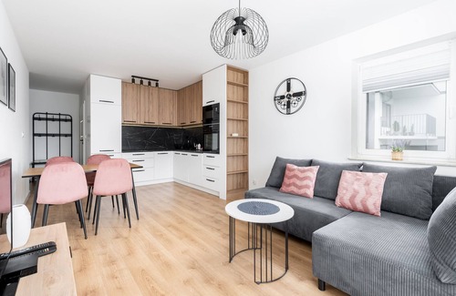 Prokocim Kosocicka Apartment is a stylish and cozy apartment, which features a living room with a sofa bed and a kitchenette, a bedroom with a comfortable double bed, a bathroom, and a spacious balcony where guests can relax and enjoy their morning coffee or an evening glass of wine. Guests have access to a range of practical amenities, including free Wi-Fi, cable TV, washing machine, iron, hairdryer, oven, dishwasher, microwave, fridge with freezer, and kitchen accessories. Additionally, the apartment is air-conditioned, providing exceptional comfort, especially during hot days. Guests also have access to a parking space in the underground garage.