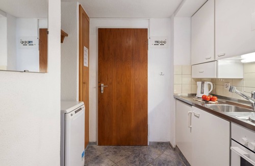 1-room apartment 28 m2 on 4th floor. Cosy furnishings: living/dining room with 2 fold-away beds and satellite TV (flat screen), radio. Exit to the balcony. Kitchenette (3 hot plates, oven, dishwasher). Hip bath/WC. Balcony, east facing position. Balcony furniture. Beautiful view of the mountains, the countryside and the resort. Facilities: Internet (WiFi, free). Please note: non-smokers only.