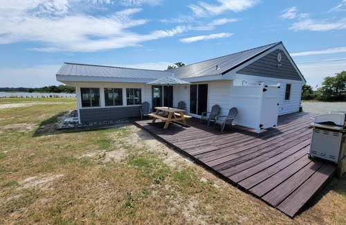 Take it easy at this unique and tranquil getaway. Open floor plan home completely renovated in 2022. Surrounded by water on 3 sides with dock access and neighbors a community beach and boat ramp. Great place for fishing, crabbing, boating, jet skiing, kayaking, waterfowl hunting or just relaxing by the fire pit. 3BR 2BA with florida room surrounded by large decks, full kitchen with quartz countertops, washer and dryer, sleeps 12, 1 queen BR, 1 Full BR, Triple Bunk BR, queen Sleeper, futon, and twin roll away bed.