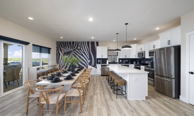 - Fully Equipped Chef's Kitchen: Cater your wedding events with ease using the spacious, fully-equipped kitchen, featuring two farmhouse-style dining tables for hosting festive meals and celebrations with your loved ones.