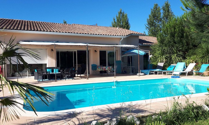 Villa 4 to 12 pers. Panoramic view of the Garonne and Marmande valley, not overlooked, quiet. , private swimming pool.