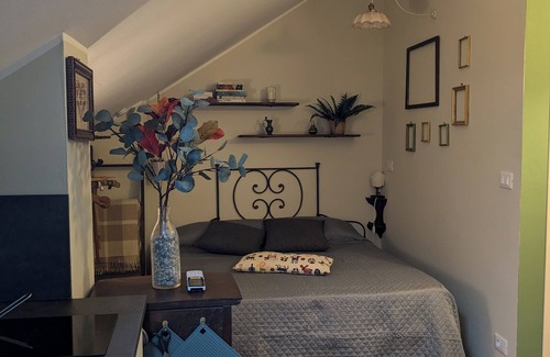Delightful little attic room in the heart of the historic centre of Cortemilia, Borgo San Michele, at the foot of the famous medieval tower. The recently renovated room has been equipped with every comfort and furnished with great attention to detail, combining the modernity of the cooking area and bathroom with rustic, retro components that take guests back to the atmosphere of times gone by.