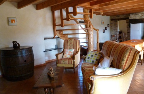 Renovation: type: bio construction: wood pellet stove, stone walls and hemp, terracotta floor.