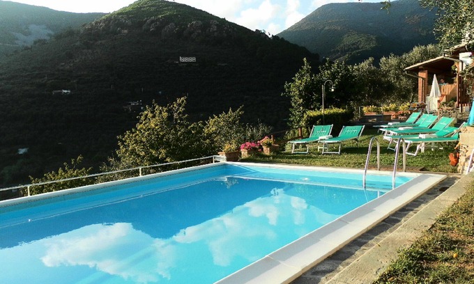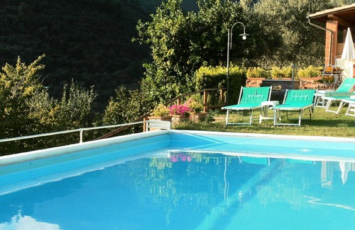 The apartment has an exclusive private parking, a garden equipped with table, chairs, deckchairs, barbecue and a pleasant swimming pool with a view of the valley.