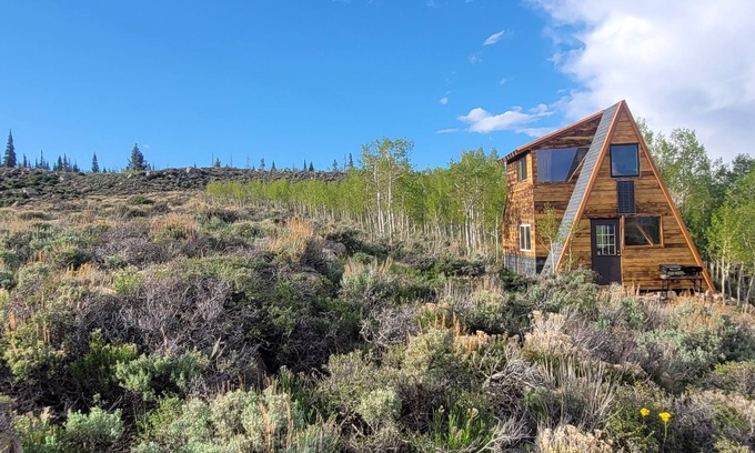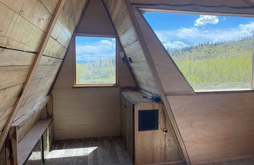 Pronghorn Point is our newest dry off-grid cabin. The design is crafted with blue stained lumber. The views are beautiful overlooking warm water ponds. Moose, deer, elk, bear, wolf, fox and pronghorn call this place home. Wood burning stove for heat and solar lights and phone charger. Blackstone Grill provided. Firepit. Water is supplied, re-fills at the shower house. Firewood supplied. Compost toilet. Private trails and 60 miles of trails in Routt and the Zirkel Wilderness.