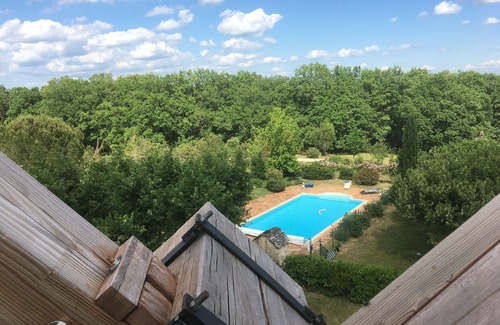 Property 2 stone towers large shady enclosed garden with large swimming pool | House in Saint-Chels