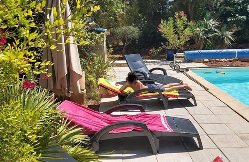A swimming pool of 10mx5, prof 1m50 with beach of 40m2, (temperature depending on the weather), a summer kitchen of 25m2 with permanent barbecue, a large terrace of 100m2 shaded, a chicken coop, swings for children decorate the house.