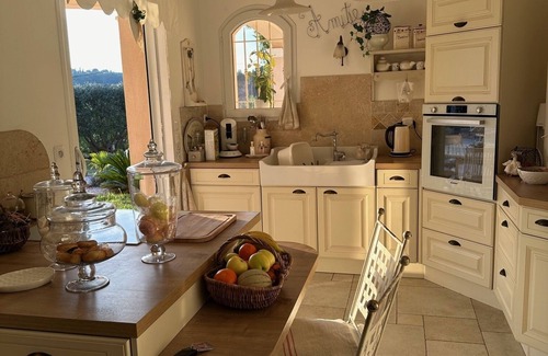 Provençal villa of 150m2 with swimming pool and quiet parking is located in Draguignan. Provençal villa of 150m2 with swimming pool and quiet parking provides accommodation, featuring Fireplace/Heating, Breakfast, Laundry, among other amenities. This House features Fireplace/Heating, Breakfast, Laundry, to make your stay a comfortable one.