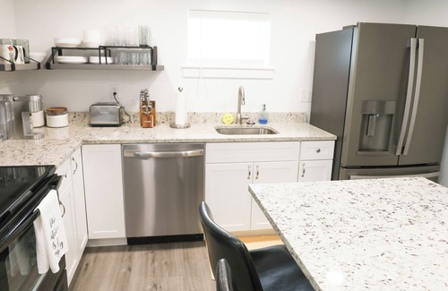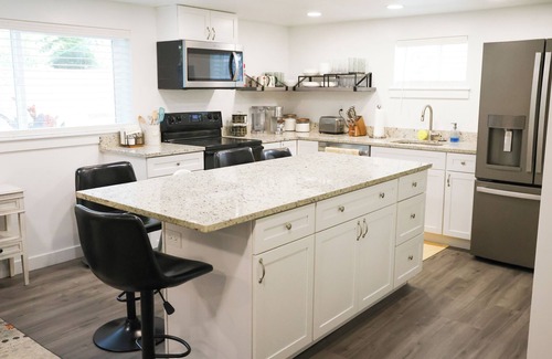 - Modern Convenience: The fully equipped kitchen has new appliances and a coffee maker, perfect for catering events or casual breakfasts before the big day, ensuring you feel right at home.