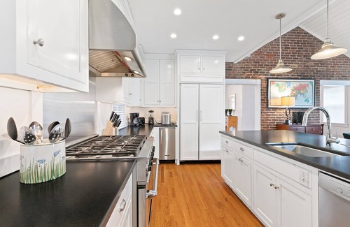 Renovated Kitchen with Gas Range and Bar Stool Seating