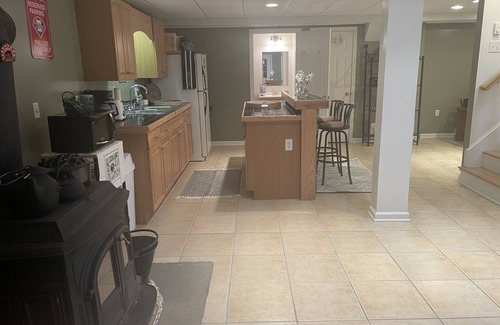 Clean, spacious lower level suite in a home located in a quiet neighborhood 4 miles from Penn State’s campus and near restaurants/stores on N Atherton. Multiple TVs and family games. Living room, kitchen with microwave/toaster but no stove. 2 queen beds with a full futon. Living room, sitting area, large bedroom. Private entrance and ample driveway and street parking. Space can fit 8 people with cots but the space is most ideal for 6 or less people.