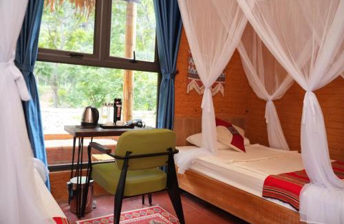 Pu Luong Riverside Lodge has mountain views, free WiFi and free private parking, located in Hương Bá Thước. There's a private bathroom with shower in every unit, along with free toiletries, a hairdryer and slippers. The lodge offers an à la carte or Asian breakfast. At Pu Luong Riverside Lodge you'll find a restaurant serving Vietnamese cuisine. A vegan option can also be requested. Guests can relax in the garden at the property. Tho Xuan Airport is 57 miles from the property, and the property offers a paid airport shuttle service.