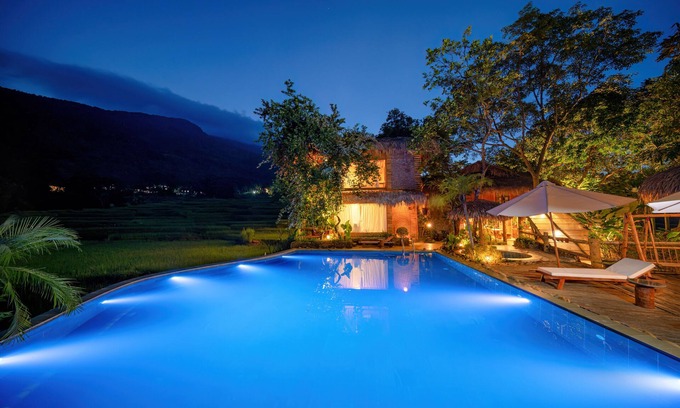 Best-rates for the Puluong Luna Resort starts from $176 per night with includes Restaurant, Guest Services, Breakfast, Child Friendly, Internet, Pool with all other amenities. Perfect for Weddings is committed to ensuring every guest experiences a comfortable and extraordinary stay, whether planning a romantic getaway, a honeymoon, a pet-friendly stay, or celebrating with the entire wedding party.