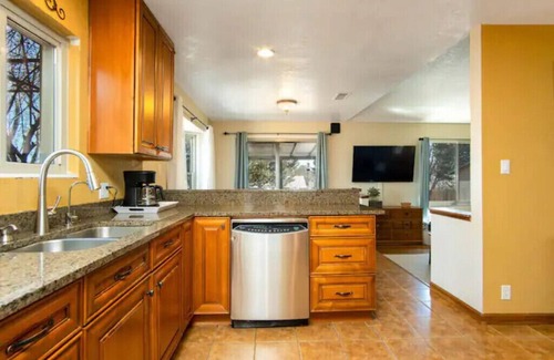 Welcome to our Cottonwood home, only a short drive to Sedona. Have fun with the whole family at this stylish place. Comfortable three bedroom, two bath home. Enjoy your morning coffee on the enclosed deck and an evening glass of wine by the firepit or a relaxing time in the hot tub in our private fenced backyar. Prepare your meals in the fully equipped kitchen or enjoy dining out at one of the many excellent restaurants in Old Town Cottonwood.