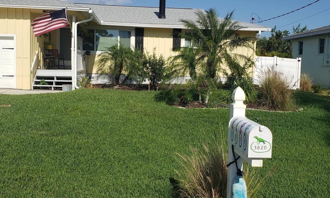 2 Bedrooms with self contained bathrooms, Open floor plan, Fireplace, Newer Appliances and Furniture. Salt Water Pool, Fenced in Yard. Have your coffee on the dock. One bridge to the Charlotte Harbor, 12X24 screened back porch BBQ deck. House totally remodeled in 2019. Dead end street. Close to stores, restaurants, 1.5 mile from Fisherman's Village. Great for kayaking, biking and boating. 90 minutes from Busch Gardens and Disney/Orlando! 37 miles to Fort Myers Beach! Local Pickleball courts!