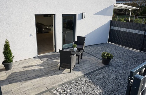 PURE LUXURY PLEASURE! Our accommodation, which was built in 2019 and opened in January 2020, leaves nothing to be desired. We make your stay as pleasant as possible. As an alternative to the hotel, we offer an exclusive apartment in a modern living environment for short and long-term guests. Sulzbach am Main is a market in the Lower Franconian district of Miltenberg, located around 7 km south of Aschaffenburg on the western edge of the Spessart and with the exception of the right-main part of the Niedernberger district directly on the Main. In our 35 - 45 sqm "Apartment Deluxe" you will experience pure luxury! The spacious, bright and friendly apartment is modern and attractively furnished. These apartments either have their own terrace with garden or a balcony. Up to three guests, plus a toddler up to two years, can arrive. A restful sleep is guaranteed by the cozy box spring bed and a comfortable sofa bed! A baby bed is also available if required. Bulky luggage and clothes can be stowed in the spacious closet. There is also a fully equipped kitchenette in the apartment (microwave, oven, hot plates, coffee machine, refrigerator with freezer, kitchen utensils etc.) and a dining area. A 40 "LED satellite TV and free WiFi are available to our guests. In our own bathroom our guests will find a toilet, a sink and a shower. Some of the apartments are also barrier-free.