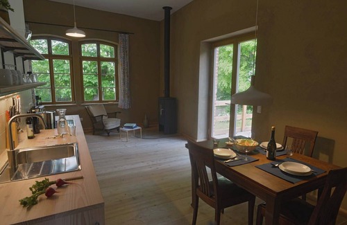 Situated in a village, this welcoming apartment brings all of Nordwestuckermark within your reach. Thanks to the convenient onsite parking, you can either leave your vehicle behind and enjoy a short 5-minute walk to Uckermark Lakes Nature Park, or easily tackle the 23-minute drive to Boitzenburg Castle.