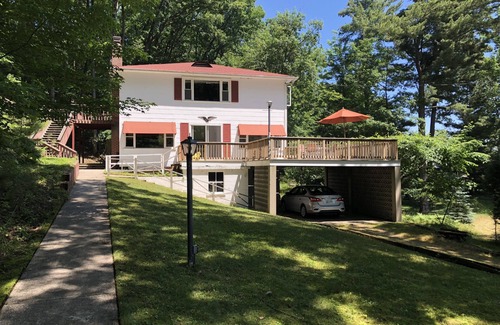 Steps away from "the big lake" (Lake Michigan) and "the little lake" (Portage Lake), this classic 4 bedroom, 3 bath summer cottage is perfect for kicking off your shoes and letting the peace of "up north living" rejuvenate the soul. Not much required except your willingness to relax. Keep your boat at the Portage Point Resort just a few blocks away. Enjoy the areas swimming, boating, fishing, and golfing. Visit the quaint neighboring towns along the Lake Michigan shoreline and stop at the fruit and vegetable stands, overlooks, wineries, lighthouses, and microbreweries along the way. Many area hiking and biking trails.