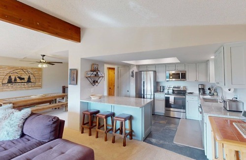 Your comfort is our priority at this spacious two-story condo. Featuring an open floor plan, on-site parking, and essential amenities such as high-speed internet and a washer and dryer, everything you need is right at your fingertips. Enjoy the magnificent views of the mountains from the living area or step out onto your private balcony – an ideal spot for sipping morning coffee or an après-ski drink after a day in the fresh mountain air. The main level includes a welcoming living area and a full kitchen, while the downstairs offers additional sleeping arrangements with two bedrooms, ensuring everyone has a cozy place to retreat after a joyful wedding celebration.