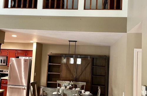 This home features new furniture throughout. Two king beds, and two queen beds with upscale linens and towels. Each room features a TV and comfortable memory foam mattresses. The family room boasts an oversized reclining couch and loveseat.