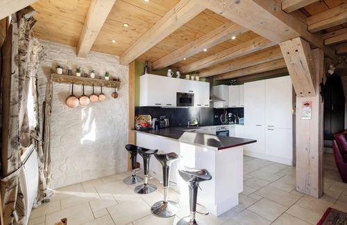 With its convector heating system and fireplace, full south-facing exposure, and unobstructed views of the surrounding mountains and countryside, this house is the perfect retreat for both relaxing and active vacations in nature.