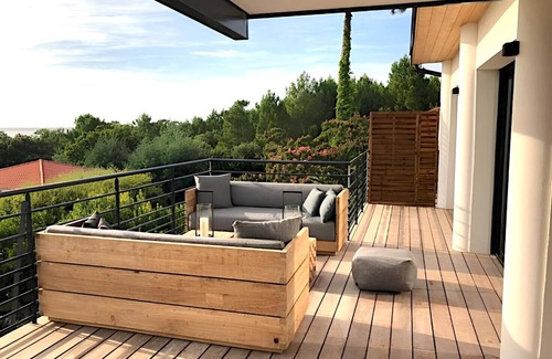 Pyla - Superb property with Bassin view is located in Pyla-sur-Mer. Pyla - Superb property with Bassin view provides accommodation, featuring Internet, View, Guest Services, among other amenities. This Villa features Internet, View, Guest Services, to make your stay a comfortable one.