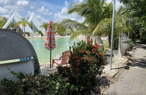 The village was built 20 years ago , so please understand these pyramids have some slight wear and tear. Keep in mind it is a tropical and humid environment located on a natural spring lake. For those travelers who have sensitivities and allergies these pyramids might not be perfect for you. We are not representing these homes would compare to an elite hotel or resort, but an alternative to other vacation options.