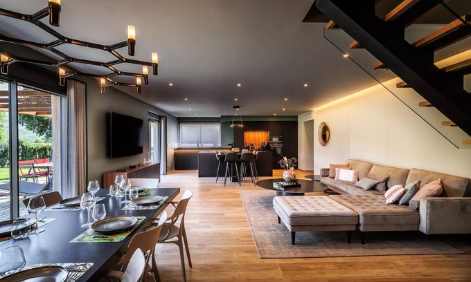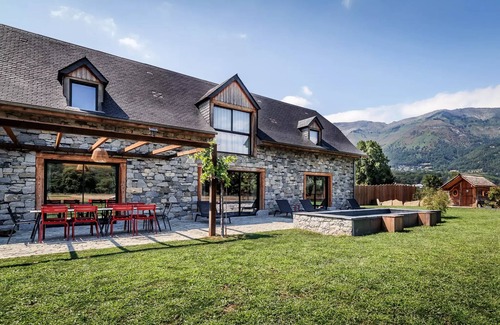 Residence: Located less than a kilometer from the Pyrenees Animal Park, the establishment offers you the opportunity to stay in two villas that can accommodate the whole family or your reunion with friends, all in the fresh air and in a green setting. The location is ideal for a visit to the Parc Animalier des Pyrénées, which has over 120 different species. You will be seduced by the calm and the breathtaking view of the Pyrenean peaks . You have the choice between two exceptional accommodations: La Grange , an old barn renovated with noble materials or Le Moulin , with modern decoration mixing wood and colorful details.