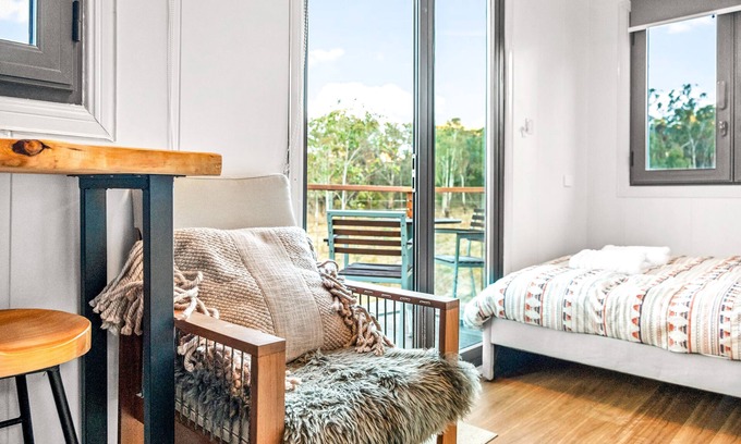Note that if booked on its own, the other Tiny Home may also be booked by another guest. they are private from each other but share the outlook to the dam. Each Tiny Home is fitted out independently. The price of Redbird includes linen and towels.