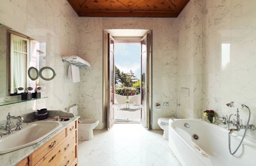 At QC Terme Grand Hotel Bagni Nuovi, indulge in a range of opulent amenities tailored for you and your guests. The hotel boasts 74 uniquely designed accommodations equipped with luxurious features such as Egyptian cotton sheets, down comforters, and premium bedding. Two outstanding restaurants offer gourmet dining experiences, while the full-service spa invites you to unwind and rejuvenate. Enjoy recreational facilities including 15 spa tubs, a sauna, and a fitness center, ensuring you and your loved ones are pampered before and after the big day.