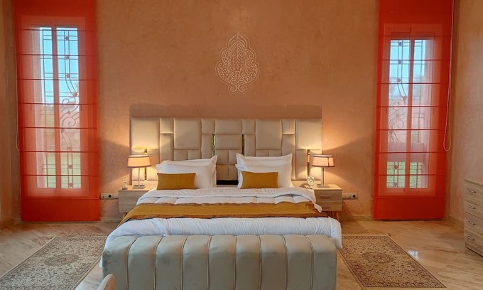 Nestled in Mers El Kheir, this 5-bedroom, 7-bathroom villa brings it all within your reach. Fans of nature and the outdoors will love being 22 minutes by car from Plage de Temara and 15 minutes from Foret Hilton. If you'd like to explore the area, you can make the 11-minute drive to Stadium Moulay Abdellah or the 14-minute drive to Royal Golf Dar Es Salam.