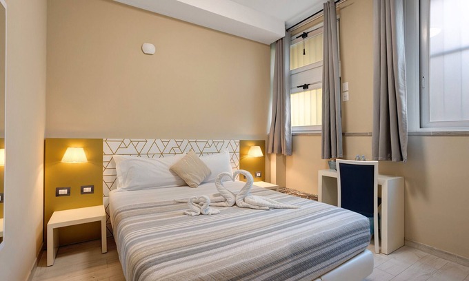 The quadruple room in Milan offers 23 m² of space and can accommodate up to 4 people. It features one bedroom and one bathroom. The room is equipped with private air conditioning, Wi-Fi suitable for video calls, a TV, and a dedicated workspace. Additional towel sets are available for an extra fee, with arrangements made during check-in.