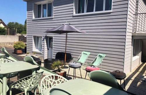 Modern comfortable accommodation located in a residence (3 units) 100m from the beach. Enjoy a bright and welcoming accommodation, located in the heart of the landing beaches, ideally located to enjoy the festivities of the 75th anniversary of the landing or simply enjoy moments of relaxation with the family.