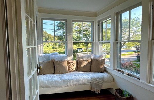 2 bed 1.5 bath sunlight filled Farmhouse with water views of Wequetequock Cove. Private yard with stone patio and a shaded picnic table and front porch facing the water and a beautiful enclosed sunroom. Updated 1851-built house with lots of character!