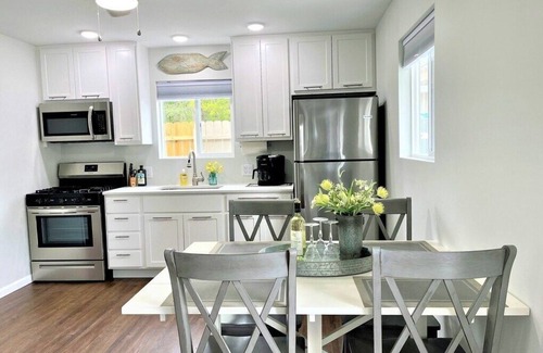 Adorable 2-bedroom cottage that sleeps up too 6 guests with private patio, propane firepit and grill, Tv's WIFI, linens, towels, blow dryer, and a fully stocked kitchen. Enjoy additional outdoor amenities.