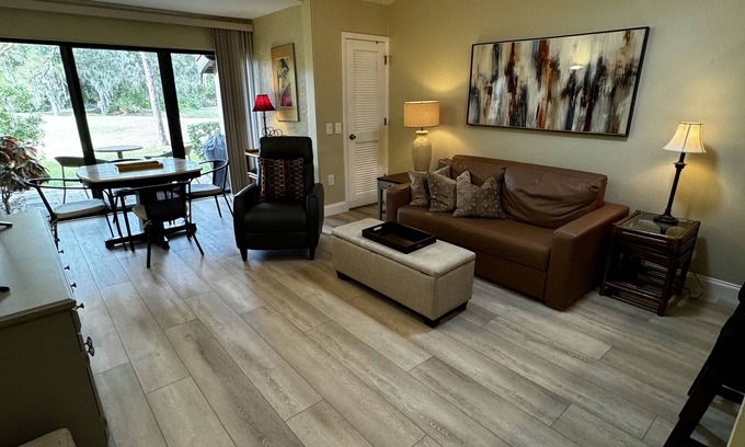 This one bedroom/ one bath villa is in the heart of the Meadows community. This pleasant community is surrounded by well established lush trees and greenery. There are miles of hiking trails plus a community pool. And it is so close to beaches, shopping, movie theaters , golf courses and restaurants making your vacation stay very enjoyable.