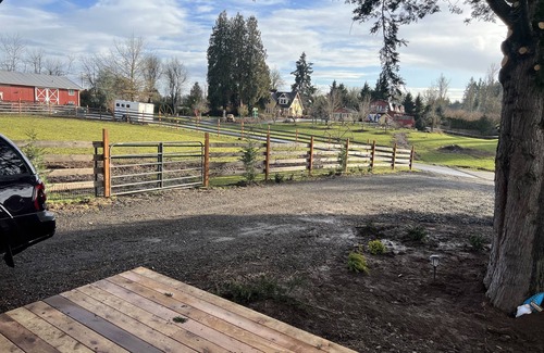 Quaint cabin located on 15 acres come enjoy the country life, cows, horses, dogs, goats, we have all the animals fruit trees.. you love the view.. located right between Portland and Salem. Easy commute to I five.
