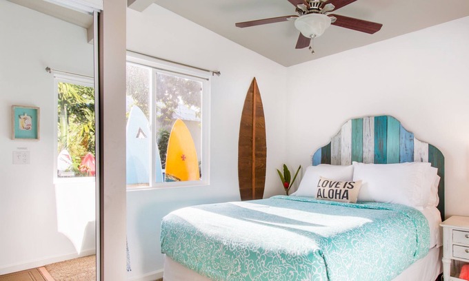 SUMMARY: Walk out the back gate to the coffee cafe or small local grocery store. Enjoy the outdoor shower, semi-private yard with a surfboard fence and murals and outdoor covered area for relaxing. Private and quiet cottage in a wonderful location for exploring the North Shore, Road to Hana and Haleakala. Perfect for couples celebrating their honeymoon or anniversary!